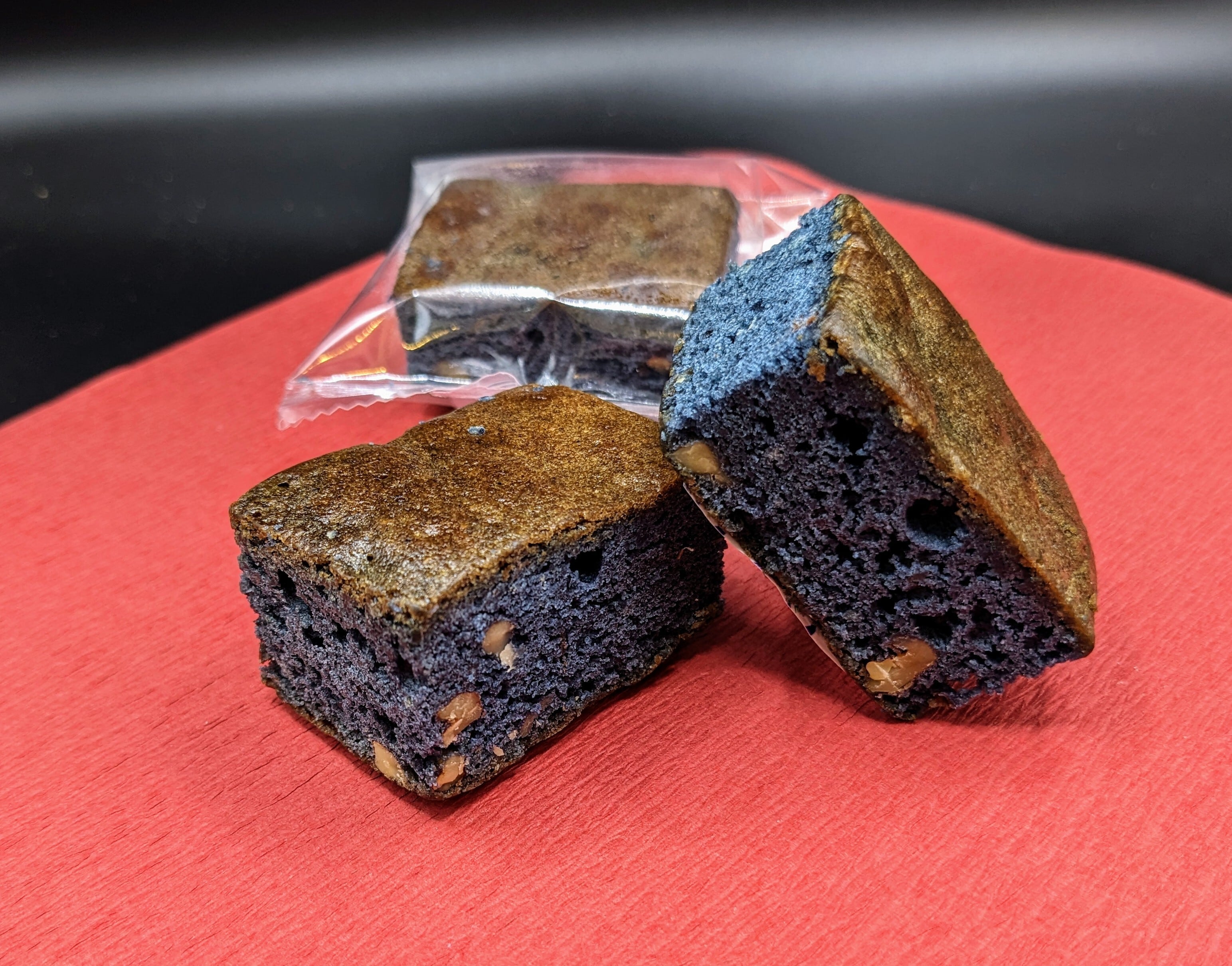芳醇なチョコレートとクルミの食感が楽しめる色鮮やかな青いブラウニーです。